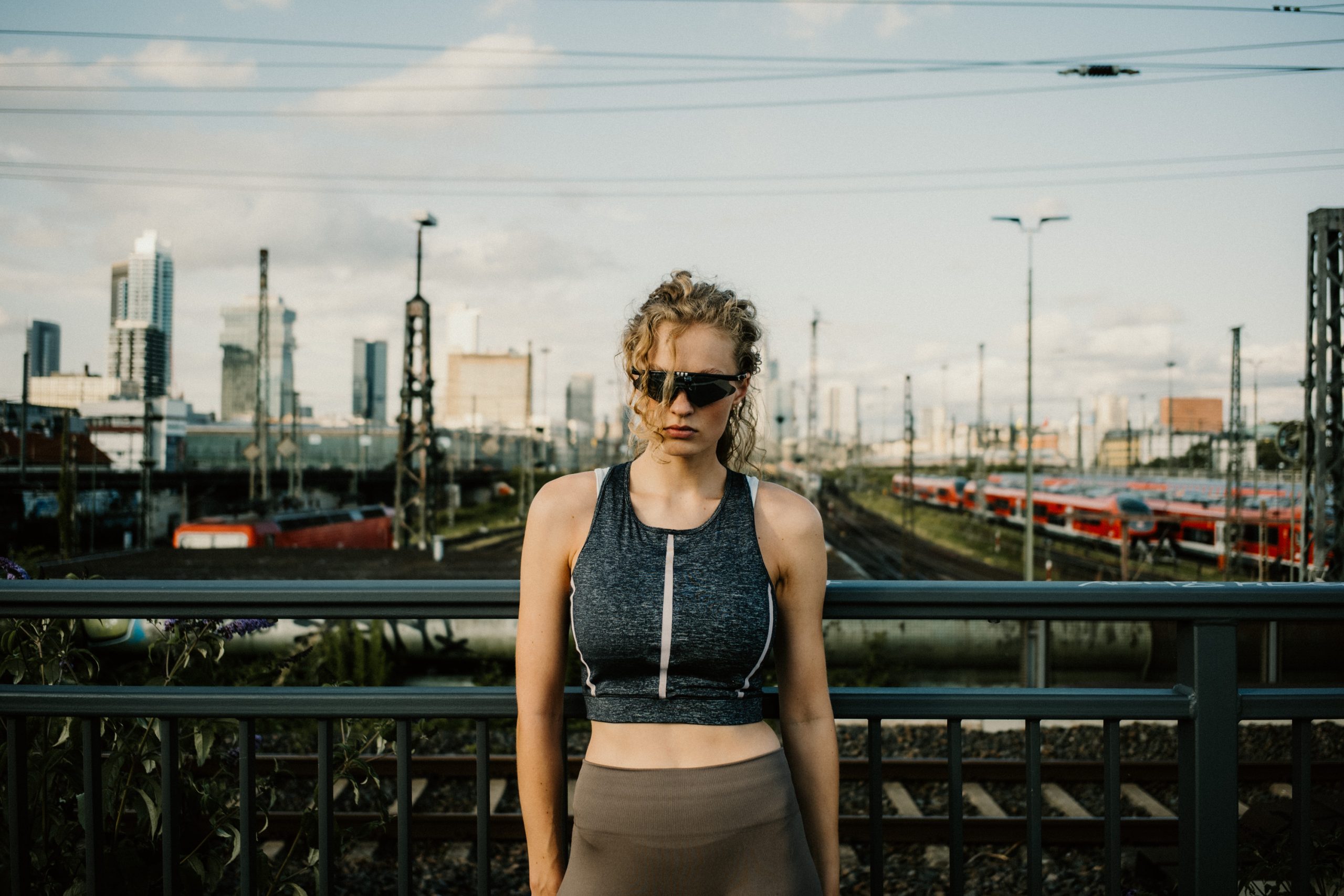 This personal project explores the intersection of running culture, urban aesthetics, and natural light – shot on location in Frankfurt am Main. Together with model Sarah, I created a dynamic photo series that highlights female athleticismand the contrasts of movement within a concrete cityscape.